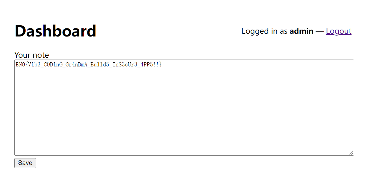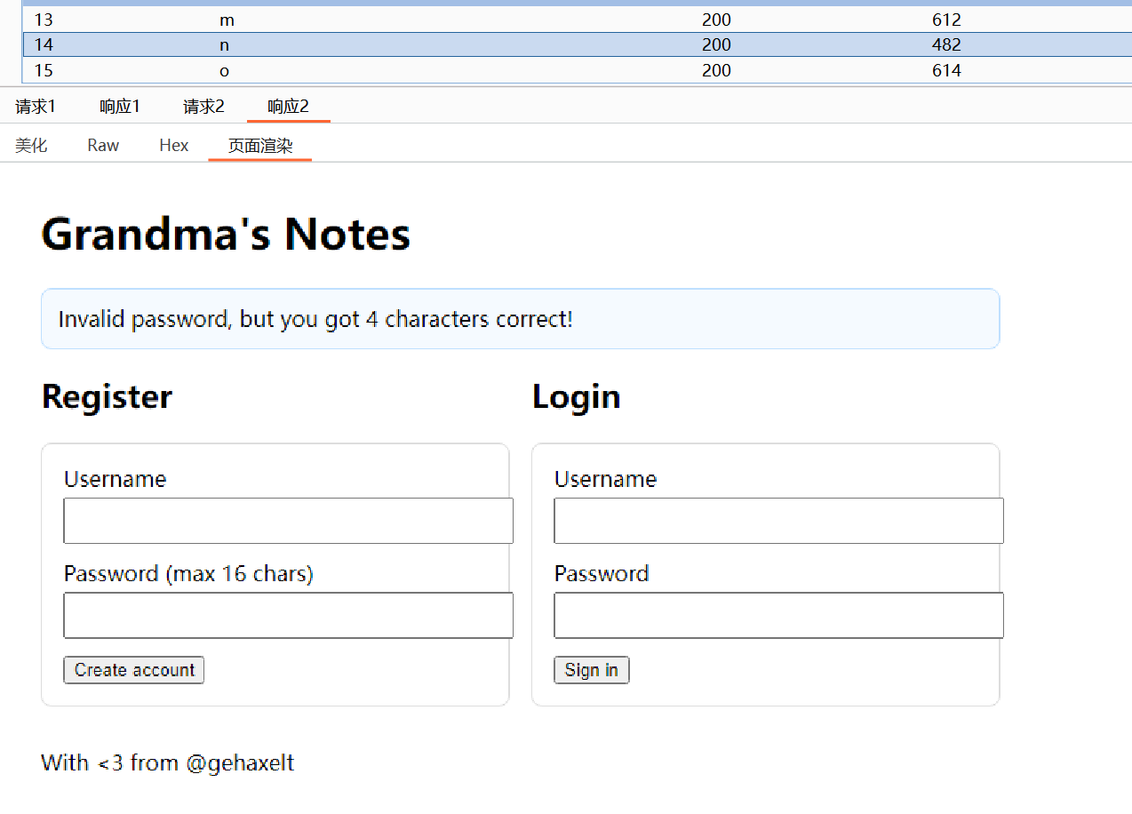 看源码可知会提示密码前几位的正确性。burp攻击,记得开重定向,减缓攻击速度,即可爆出admin密码。