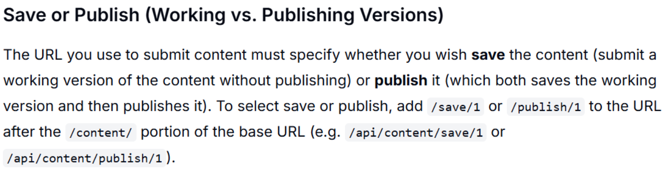 根据官方“Save Content Using REST API”的做法,更新/发布内容需要请求: