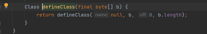 protected final Class<?> defineClass(byte[] b, int off, int len)